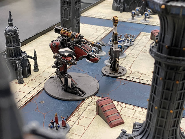 For my second game of Legions Imperialis, I had the privilege of playing a practice match with a friend who owns an incredible collection of terrain. He went above and beyond, setting up an awe-inspiring battlefield in advance. Two-thirds of the board was a sprawling Civitas Imperialis, its towering gothic structures forming the heart of an Imperial city, while the remaining third depicted the outskirts of a Mechanicum Fabricator Sector — a stark contrast with its servitor vats, landing pads, and industrial sprawl. The sight alone was enough to make any commander eager for battle.